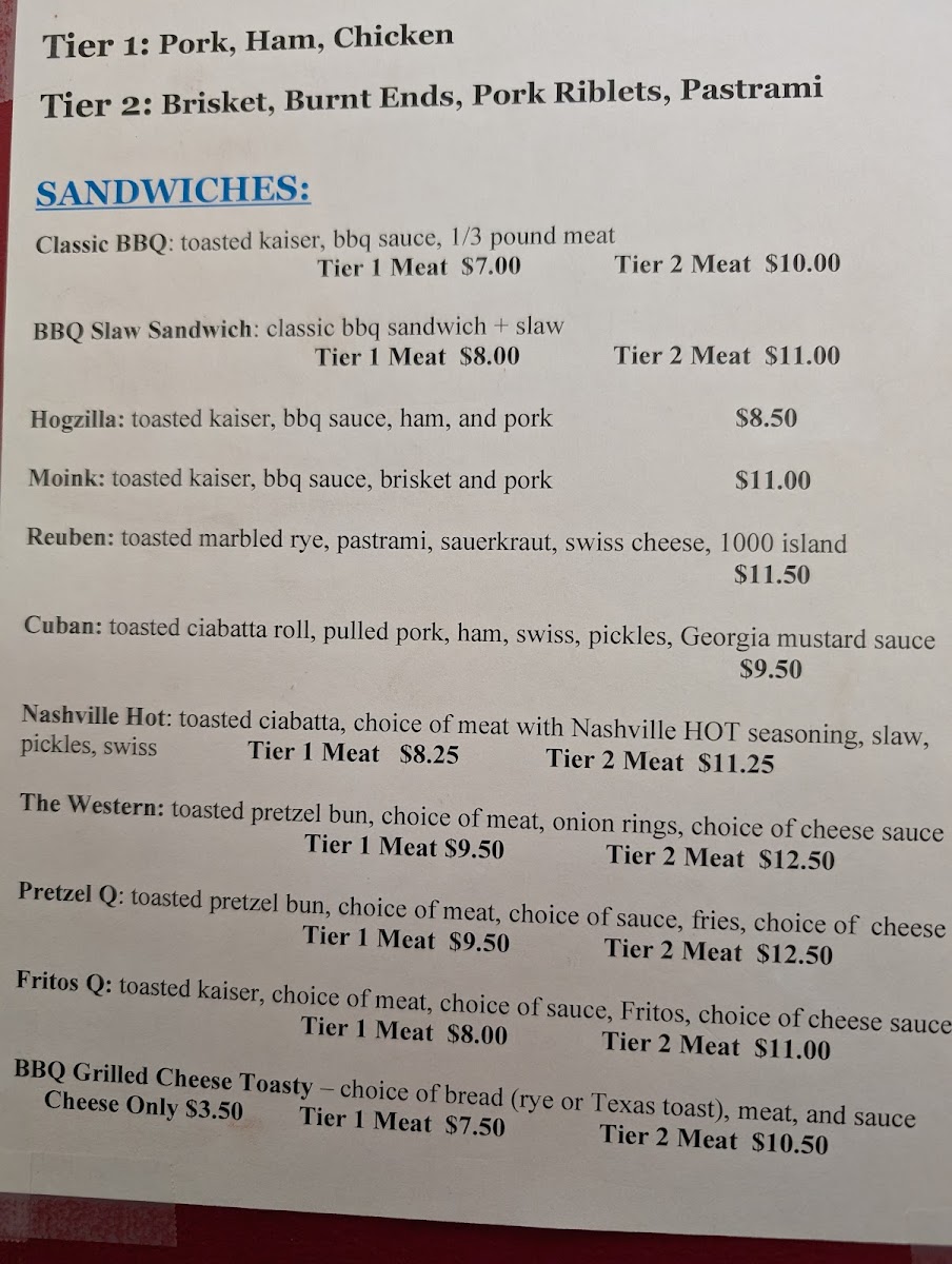 Whether you're stopping in for a satisfying lunch or gathering with friends over dinner, the menu provides crowd-pleasers such as the Triple S with its mild honey BBQ notes, a smoky Horseshoe stacked with savory toppings, or the indulgent BBQ Grilled Cheese Toasty filled with brisket and Carolina sauce. The selection of smoked wings—offered in varieties like Lemon Pepper or Nashville Hot—fits right in with the laid-back, homey vibe of the restaurant.