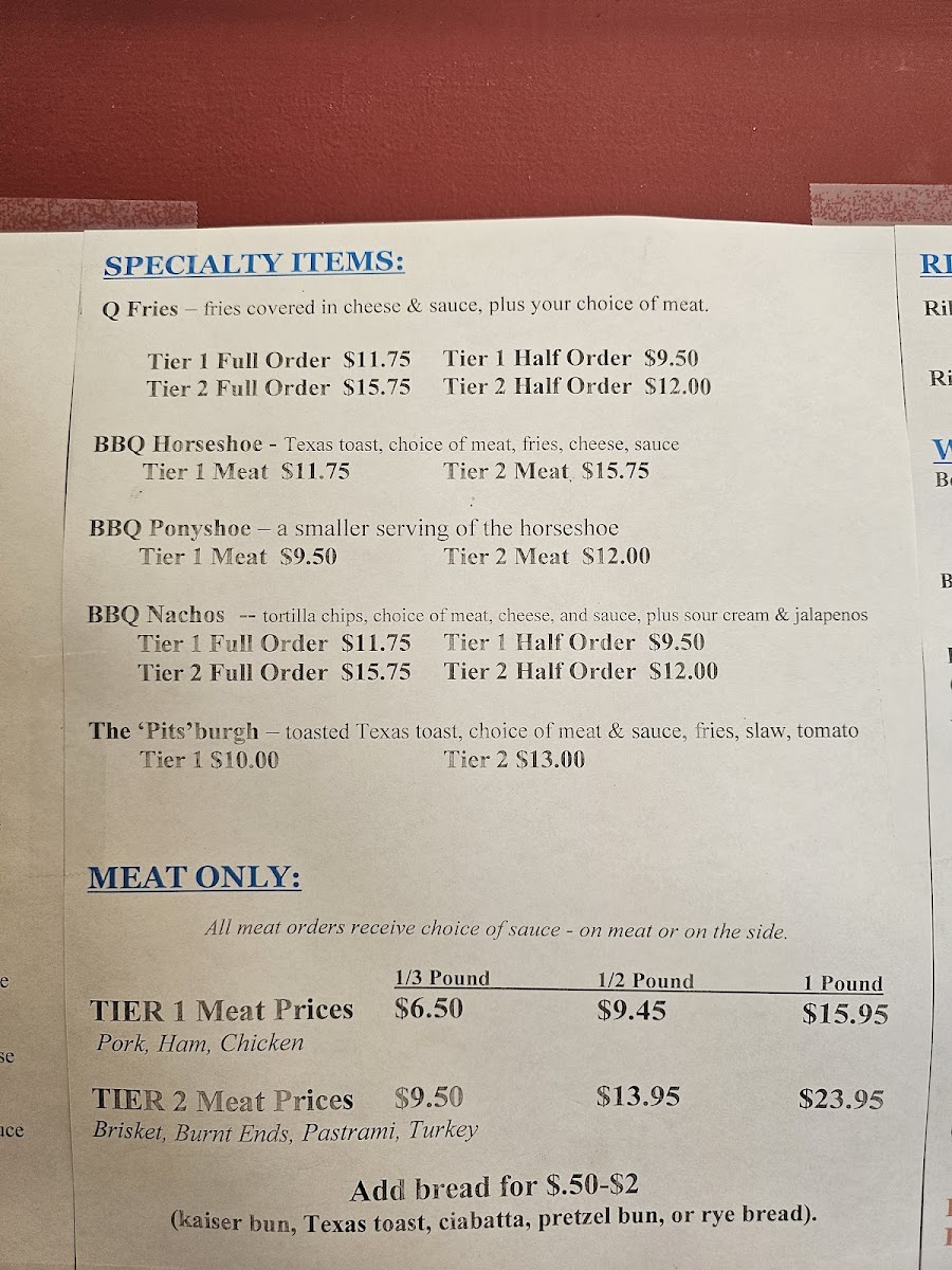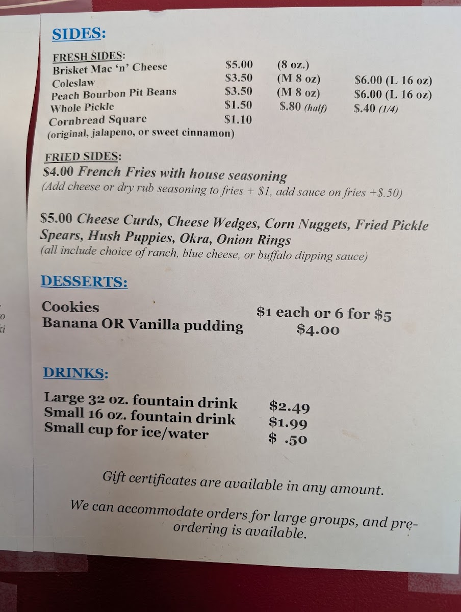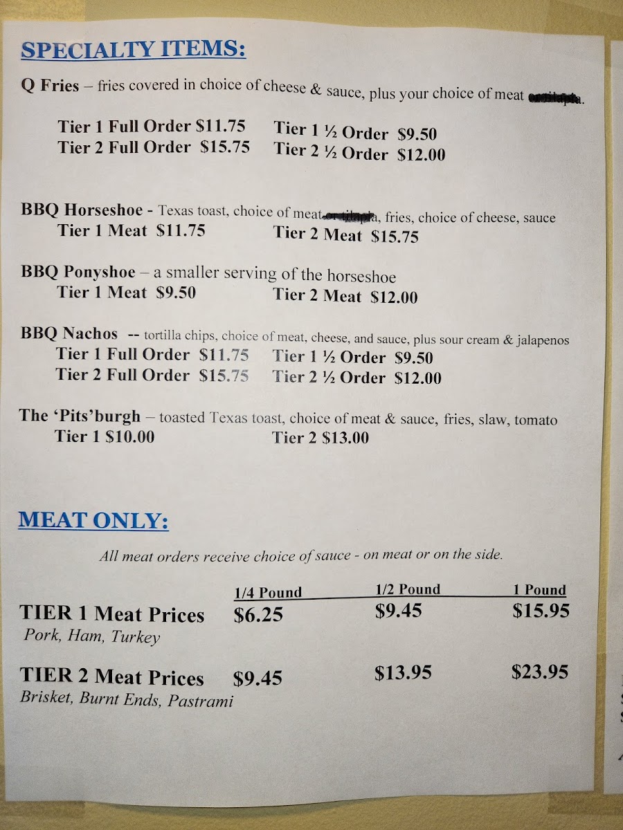 Carrol Lou's Smokehouse Menu